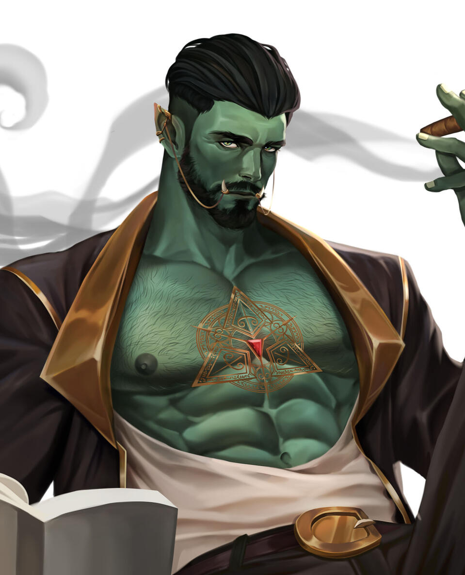 Distinguishing Feature(s): Golden hexagonal sleeve tattoo up along his left arm. Wisps of flame tattooed up his right arm. His eyes, while already golden, seem to gleam ever so subtly in an unnatural way, as if brimming with magic.
